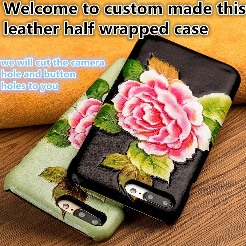 Special Price for NC08 Genuine leather 3D emboss half wrapped case for Apple iphone 6 Plus case for iphone 6S Plus co